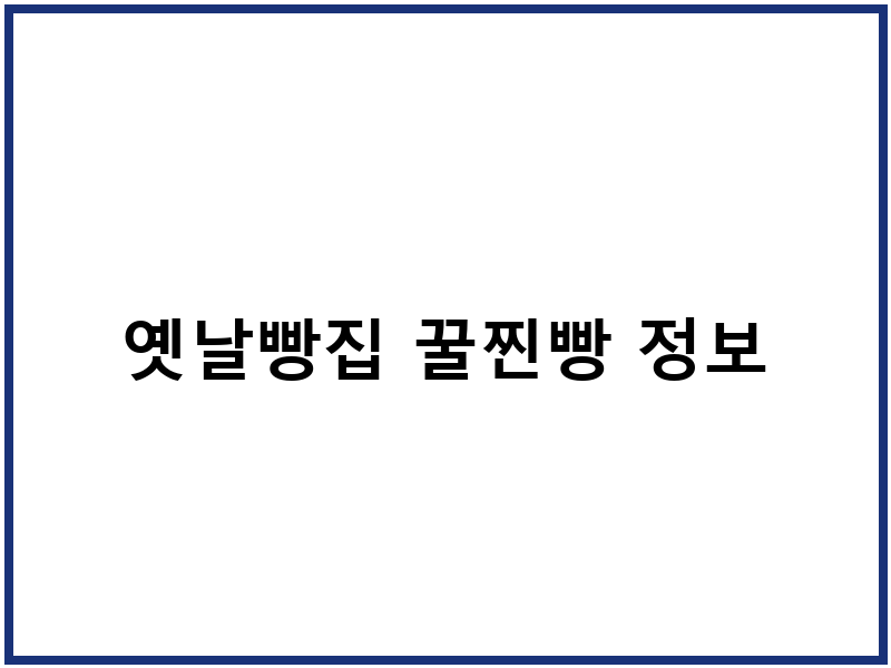 옛날빵집 꿀찐빵 맛집 위치 및 정보