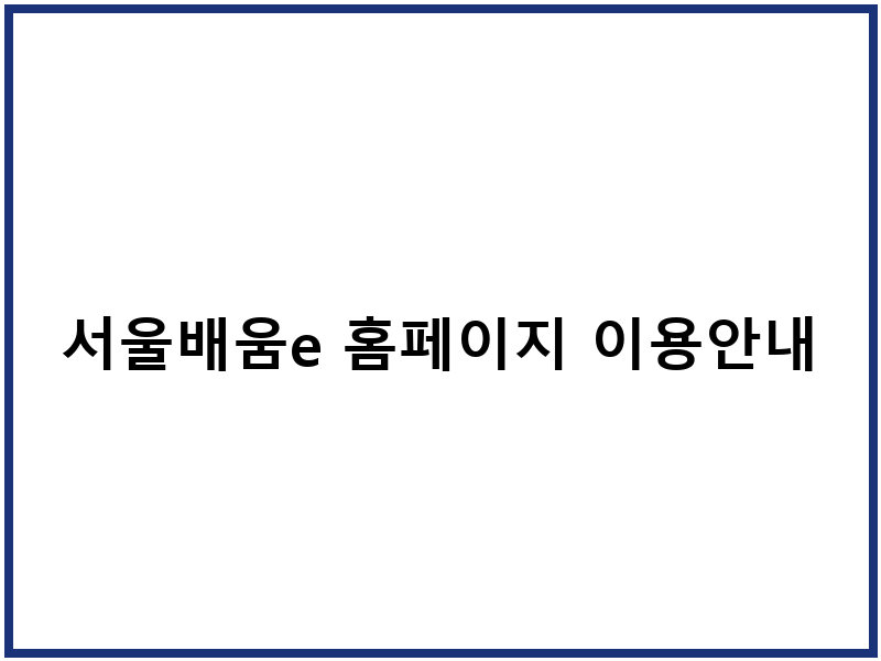 서울배움e 홈페이지 이용안내